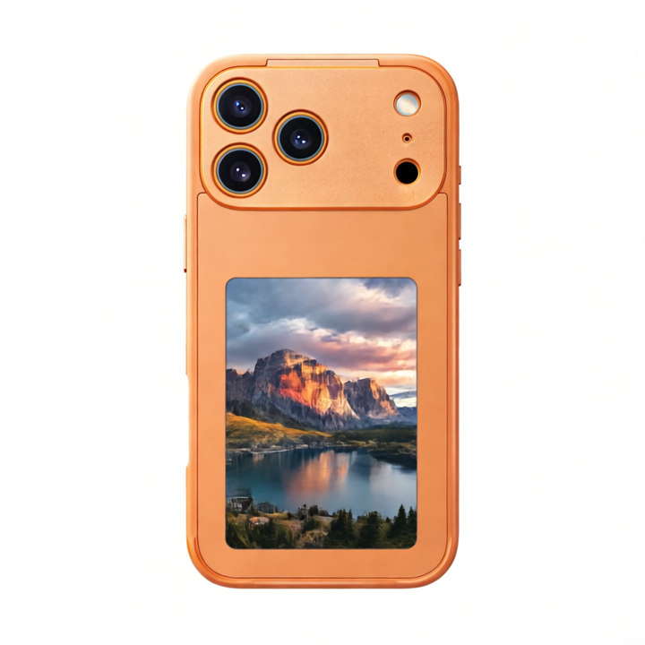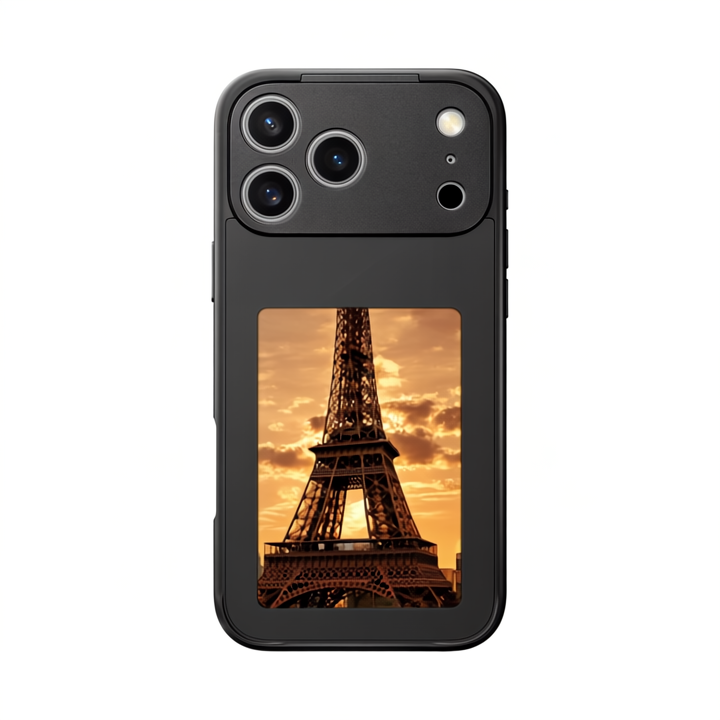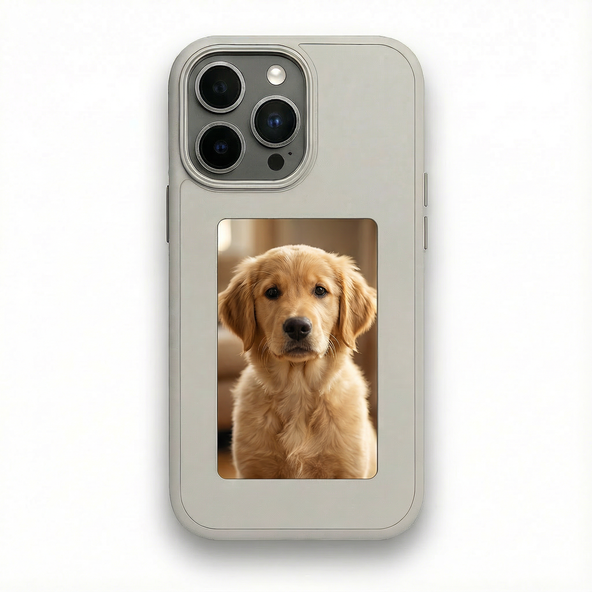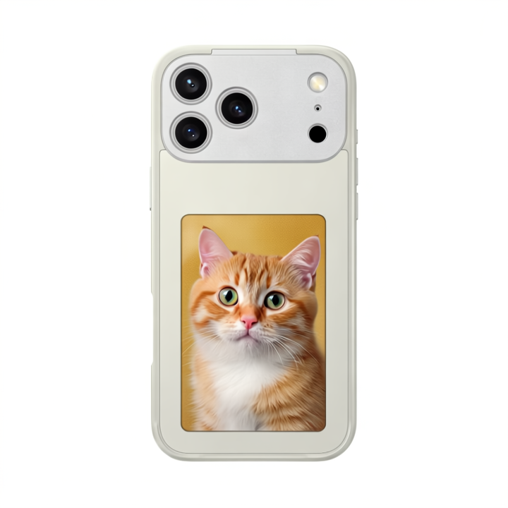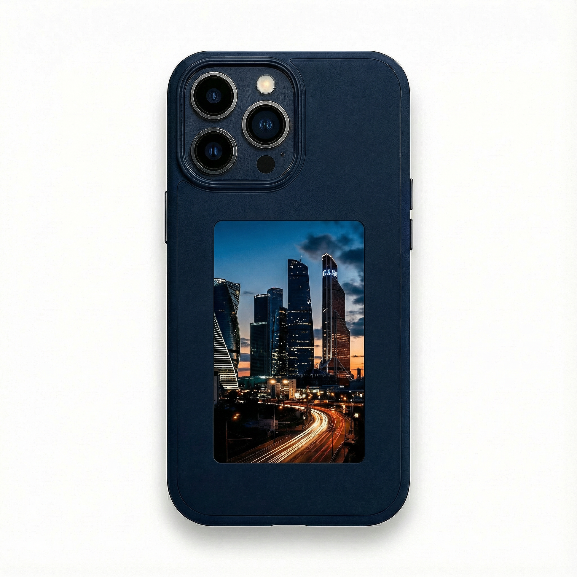 Stecke dein Smartphone in die Hülle, wähle dein Lieblingsmotiv und übertrage es stromlos per NFC auf das E-Ink-Display.