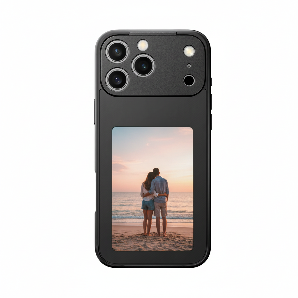 Dein Motiv erscheint automatisch auf dem E-Ink Display deiner Hülle – ganz ohne Akku oder Kabel.